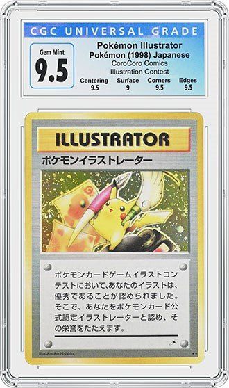 CGC Trading Cards® recently certified one of the most valuable cards in the entire Pokémon Trading Card Game: a Pokémon Illustrator, Pokémon (1998) Japanese CoroCoro Comics Illustration Contest Promo card. Dubbed “The Swirllustrator” for its coveted double-swirl, the impressive card received a CGC 9.5 grade, with sub-grades of 9.5 for Centering, 9 for Surface, 9.5 for Corners and 9.5 for Edges